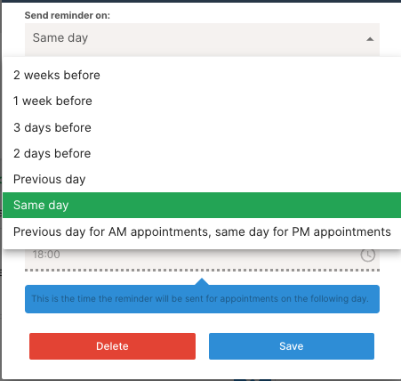 Here is a quick video that will show you how you can set up a reminder for your customer either the night before or day of the appointment (SMS/text message only)
