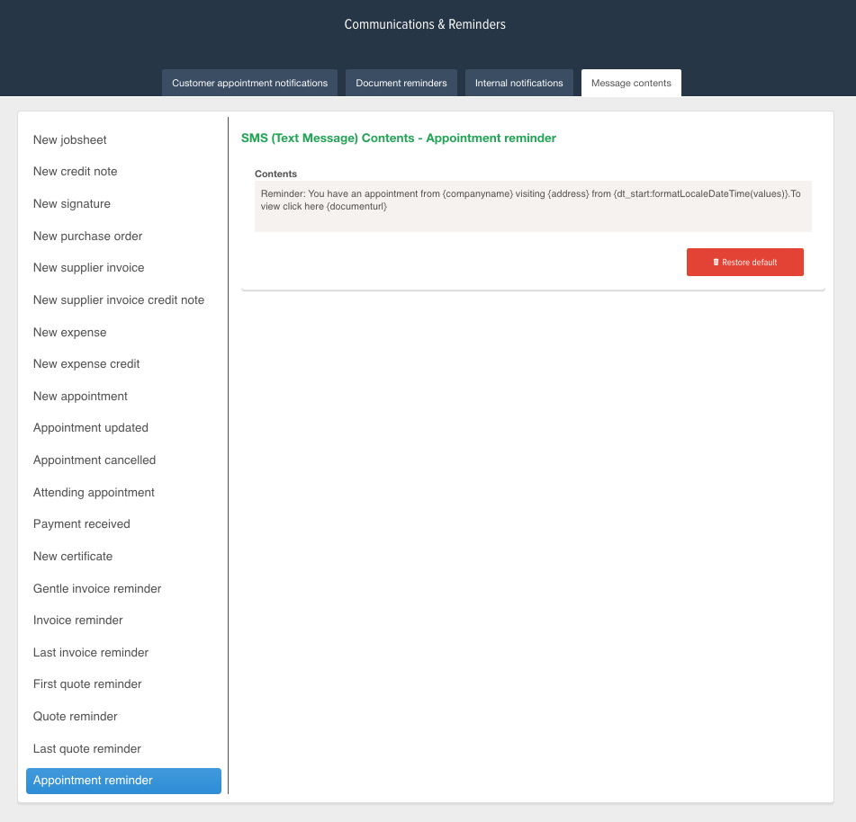 If you wish to customise your automated message, pop into the Message contents and here you will be able to generalise the automated message. This can be great if you need to add specific appointment terms of your business