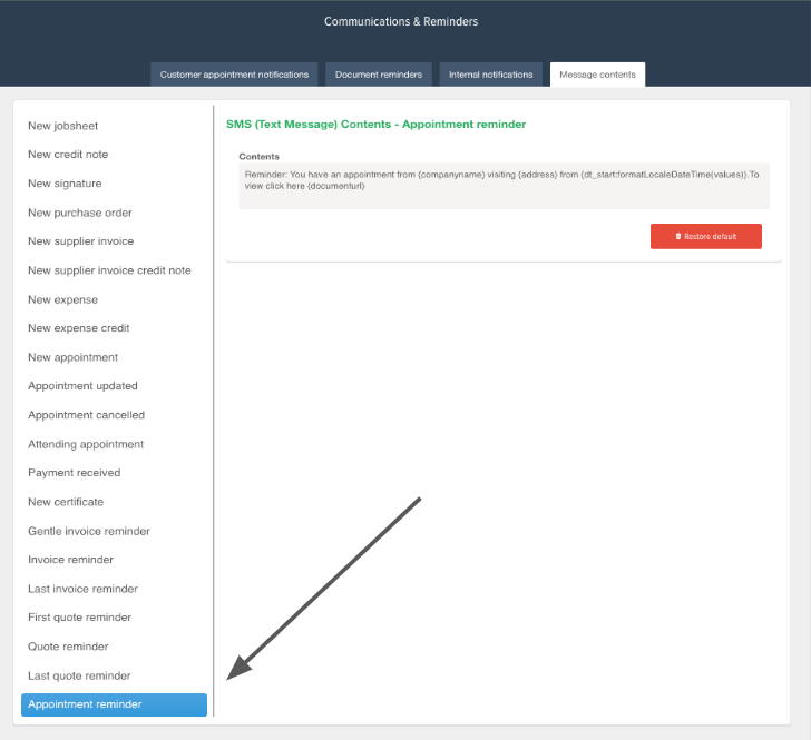 If you wish to customise your automated message, pop into the Message contents and here you will be able to generalise the automated message. This can be great if you need to add specific appointment terms of your business