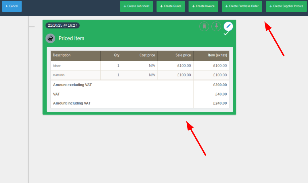 When you click the type of document that you'd like to create, it will instantly create that document with the items you selected in the previous stage on it.