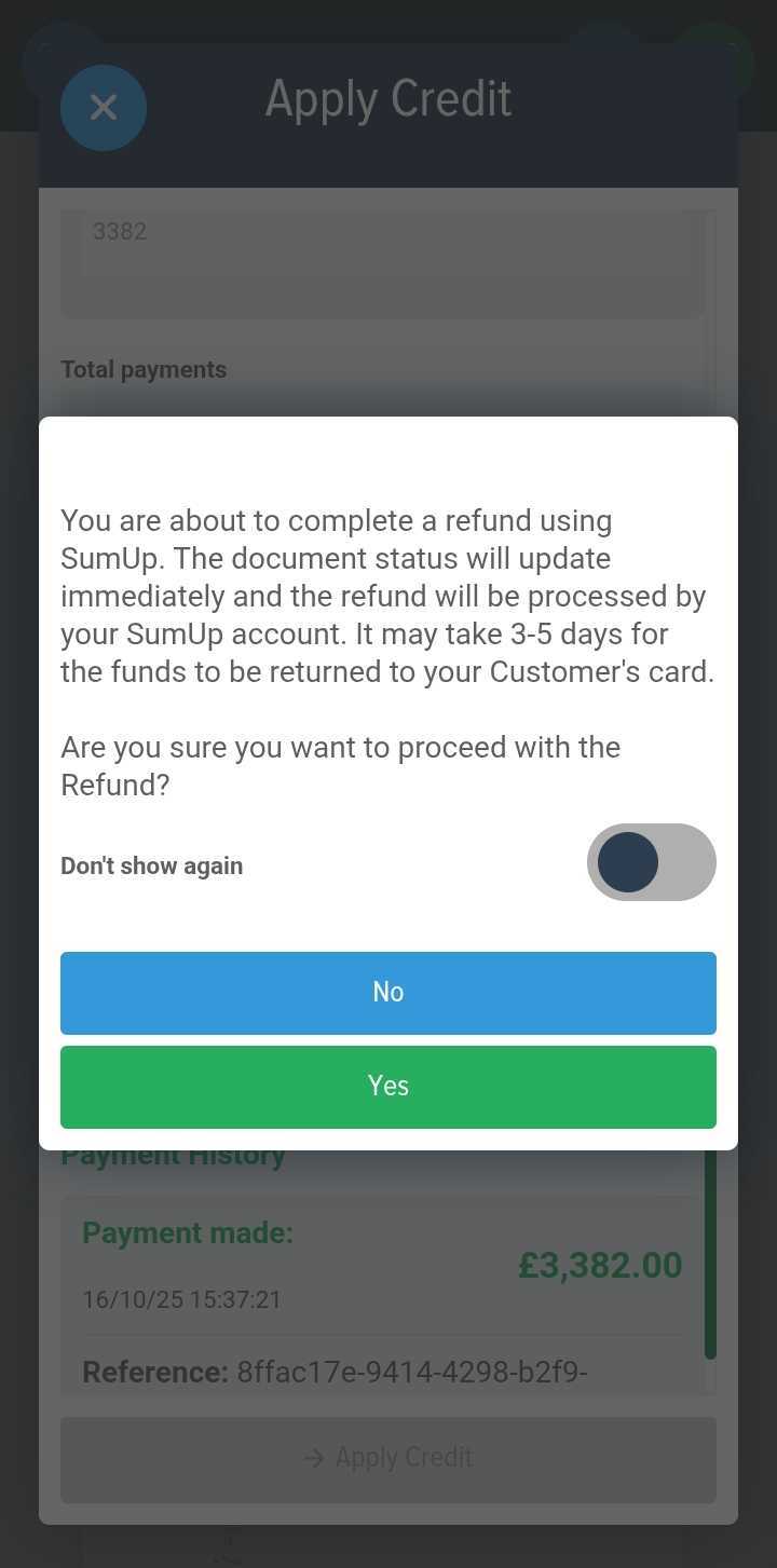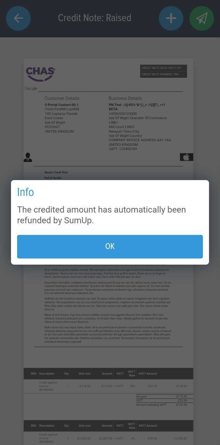 This article will explain the process of issuing a refund against an invoice that has been paid via Sumup