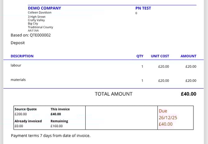 This article will show how you can use a quote to create staged/deposit invoices.